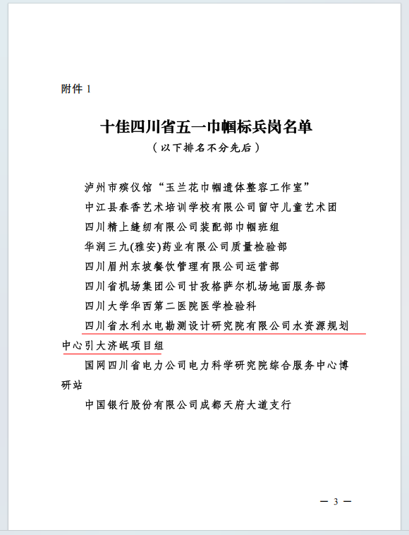 設(shè)計公司水規(guī)劃中心引大濟(jì)岷項目組榮獲“十佳四川省五一巾幗標(biāo)兵崗”稱號