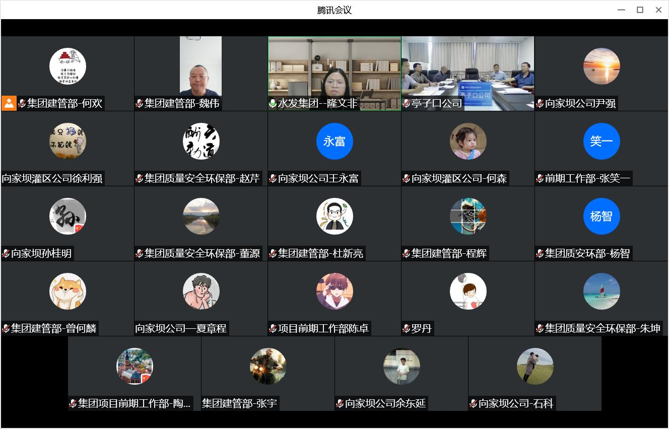 副總經理隆文非參加會議并講話,向家壩公司、亭子口公司有關負責人及相關同志,集團建設管理部、質量安全環保部、前期工作部有關負責人及相關同志,全體人員通過視頻連線方式參加會議。