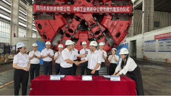 活動當天,投資公司黨委副書記、紀委書記陳雷與中鐵高新工業西南分公司黨工委書記趙毅分別介紹了企業發展概況,雙方人員圍繞國企黨建、主題教育實踐、主營業務合作進行了溝通交流,并在組織聯建、活動聯辦、業務聯動三個方面形成了高度共識。全體黨員干部職工在現場觀摩盾構機維修組裝生產線,聽取盾構機基本工作原理介紹后,雙方人員共同參與了《黨建共建協議》簽約儀式。