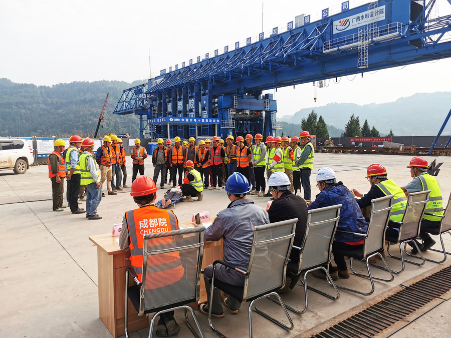 本次演練在唐家溝渡槽造槽機始發平臺進行,現場設置隧洞內發生火災應急疏散,講解煙霧中毒施救要點及注意事項,利用假人實操心肺復蘇術現場急救以及如何使用消防器材撲滅火災等三個場景。通過演練,作業人員掌握了隧洞發生火災后的正確逃生方式、了解掌握心肺復蘇術現場急救的方法,學會滅火器材選取和正確使用。活動以點帶面,提升了參演人員檢查消除火災隱患、組織撲救火災、人員疏散逃生和自救互救能力。下一步,項目部將以消防安全月為契機,緊緊圍繞活動主題,持續深入開展專題培訓、警示教育、專項檢查等活動,構建群防群治安全網,真正統籌好生產和安全,為加快助推亭子口灌區一期工程建設保駕護航。