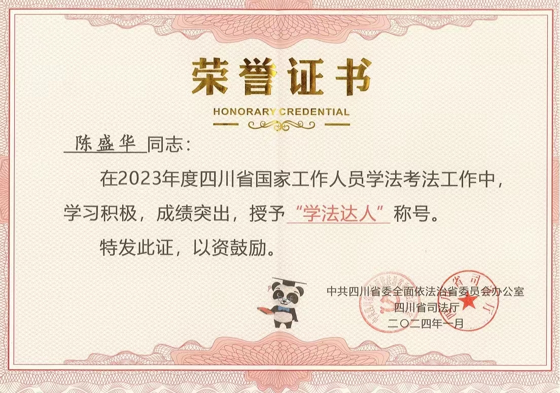近日,中共四川省委全面依法治省委員會辦公室、四川省司法廳通報2023年度四川省國家工作人員學(xué)法考法工作情況,全省114.8萬人參考,評出學(xué)法超過1000分且年度考法成績滿分的“學(xué)法達(dá)人”共1143名,其中建設(shè)公司陳盛華同志以位列全省企業(yè)類第3名的成績喜獲殊榮。