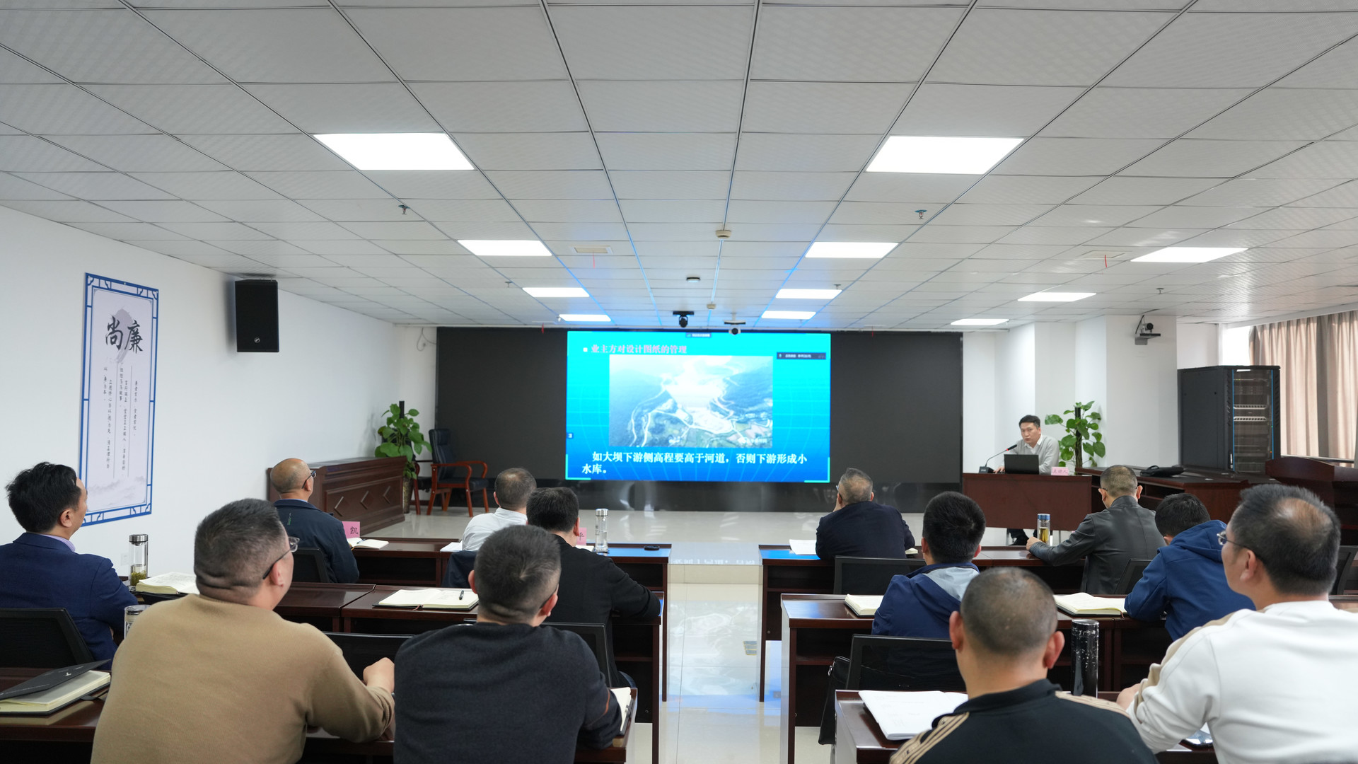 首堂課上,公司建設管理部部部長、水利工程管理高級工程師薛宇航,通過PPT圖文、典型案例分析的形式,詳細介紹了亭子口灌區工程EPC總承包模式項目法人建設管理工作要點,主要內容涵蓋程序管理、進度及計劃管理、計量計價管理、設計及施工方案管理等四個方面。
