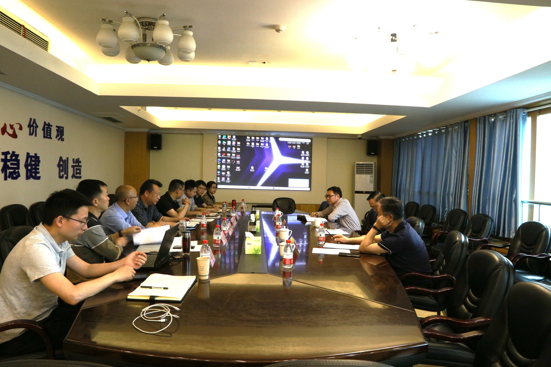 駱濤一行聽取了向家壩灌區(qū)北總干渠一期工程進(jìn)展情況、安全生產(chǎn)標(biāo)準(zhǔn)化達(dá)標(biāo)后管理和構(gòu)建水利安全生產(chǎn)風(fēng)險(xiǎn)管控“六項(xiàng)機(jī)制”落實(shí)情況的匯報(bào),對(duì)公司安全生產(chǎn)工作開展情況給予了充分肯定。座談會(huì)上,雙方就安全生產(chǎn)管理現(xiàn)狀、安全生產(chǎn)責(zé)任落實(shí)、標(biāo)準(zhǔn)化體系建設(shè)、施工現(xiàn)場(chǎng)“最后一米”、“六項(xiàng)機(jī)制”實(shí)施等方面進(jìn)行了充分、深入的交流,并就如何做好安全生產(chǎn)標(biāo)準(zhǔn)化管理提出指導(dǎo)性意見。