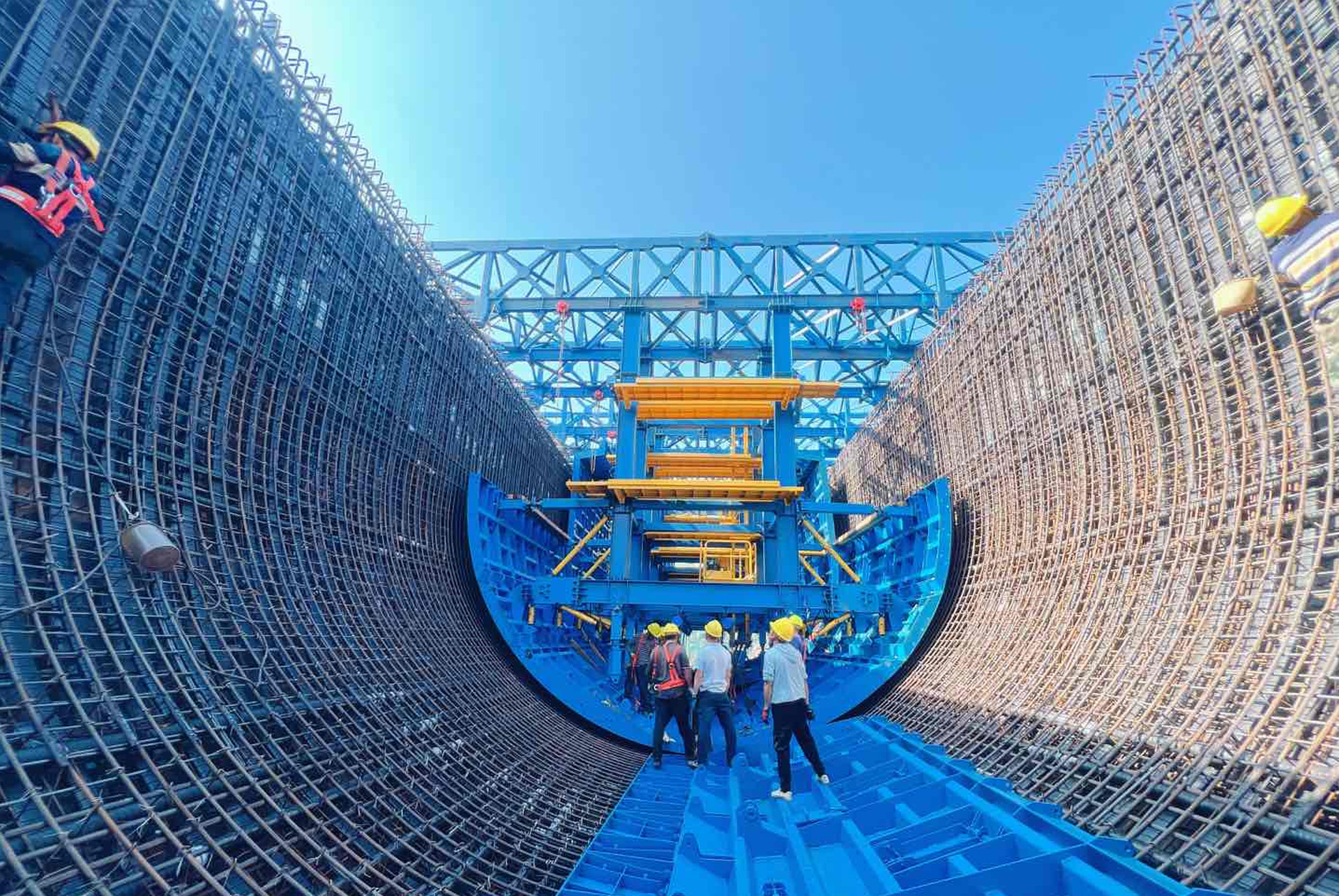 自2021年4月項目進場施工以來,四川水發向家壩灌區公司強化要素資源保障和綜合統籌調度,組織參建各方全力以赴攻堅克難。一是開展了槽身1:1原型仿真試驗,全面檢驗設計參數及施工工藝,對發現的問題提出了優化措施之后再進行正式的槽身施工。二是根據現場環境實際,創新性的將托架支撐和膺架支撐進行了結合,形成了“托-膺架”支撐系統,為工程的安全施工創造了良好的施工場地。三是聯合國內優秀的模板制造商,研發了“大直徑高架U型渡槽分段自行模板裝備”,降低了模板的安拆、吊裝風險,并大大地提高了施工工效。四是大力開展創新工作,采取澆筑一倉總結一倉的方式,及時討論研究解決施工過程中發現的問題,在施工過程中,共形成了6項專利技術,總結了10項新型的施工工法。