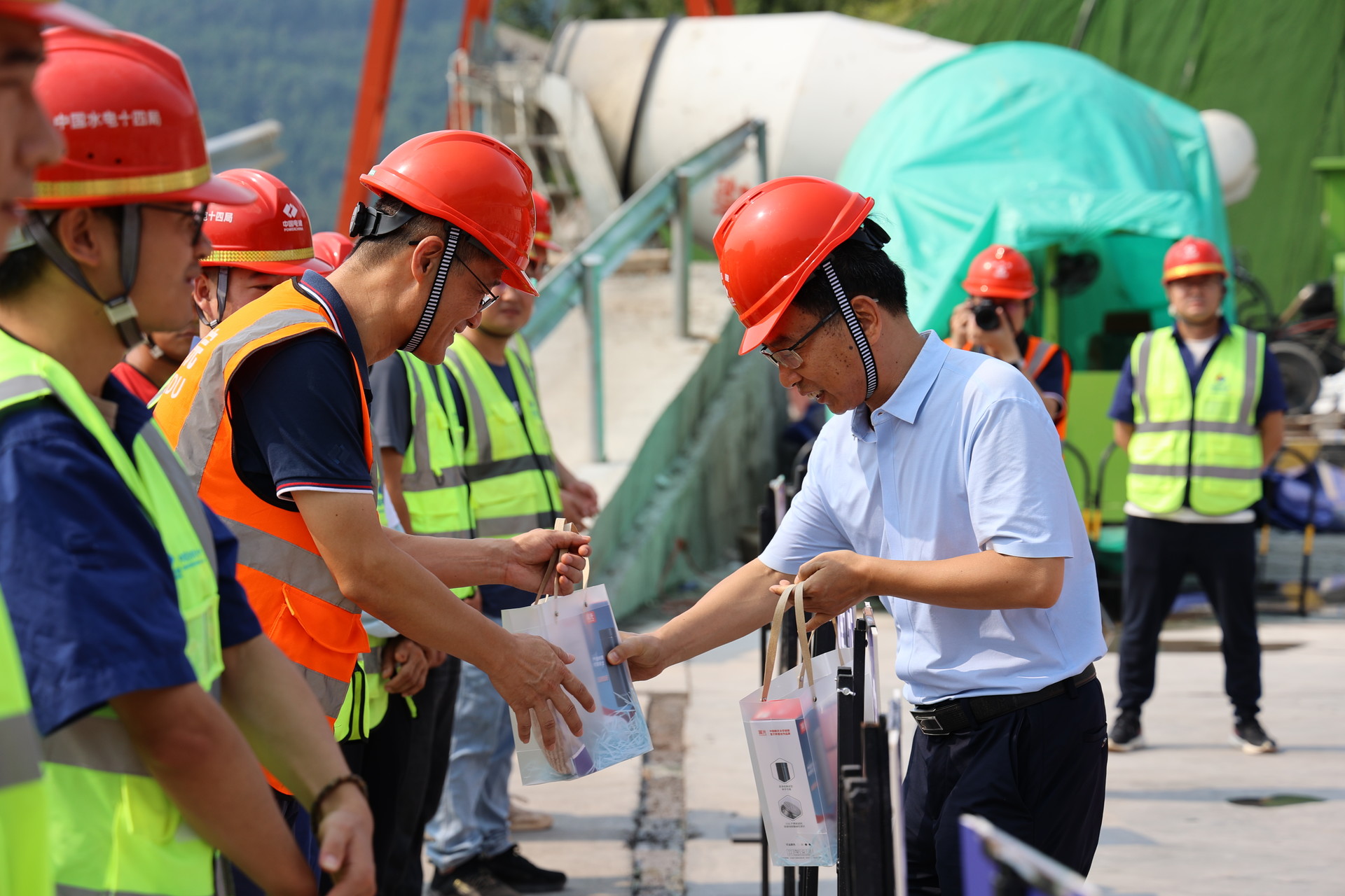 李富忠一行深入施工現(xiàn)場,看望慰問項(xiàng)目一線職工,向鏖戰(zhàn)“秋老虎”、堅(jiān)守一線、默默奉獻(xiàn)的建設(shè)者們致以誠摯的問候,感謝大家為四川省民生工程建設(shè)作出的貢獻(xiàn),并送上慰問品。走訪慰問期間,李富忠叮囑一線干部職工務(wù)必要增強(qiáng)安全防護(hù)意識,保障身心健康;囑咐各單位負(fù)責(zé)人要做好防暑降溫工作,竭盡全力為工人提供良好的生活和工作環(huán)境。