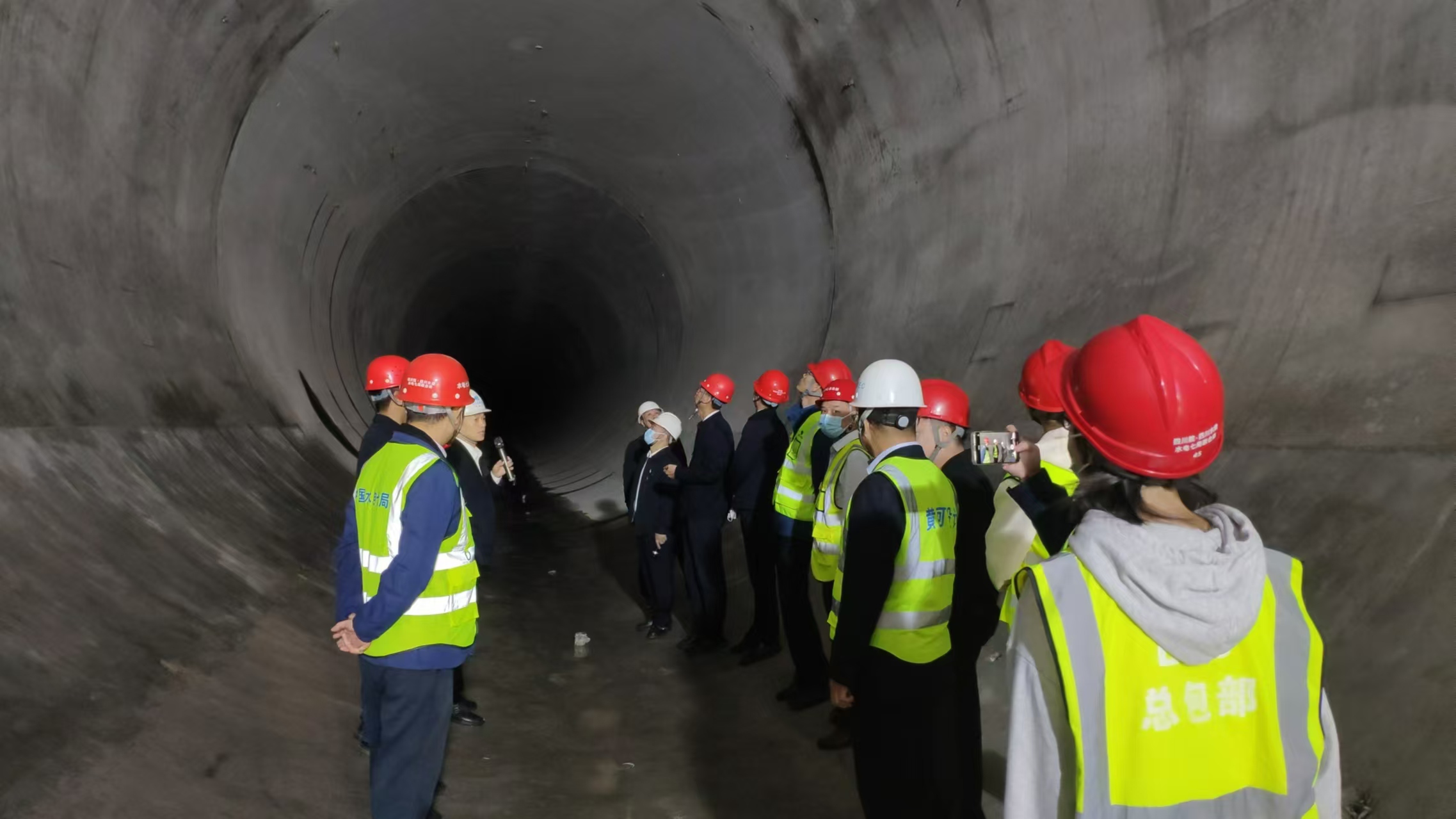 各參建單位相關負責人實地參觀了李家咀隧洞出口渡槽施工標準化建設,并針對圓形隧洞襯砌針梁式臺車滑模工藝施工經驗展開交流。