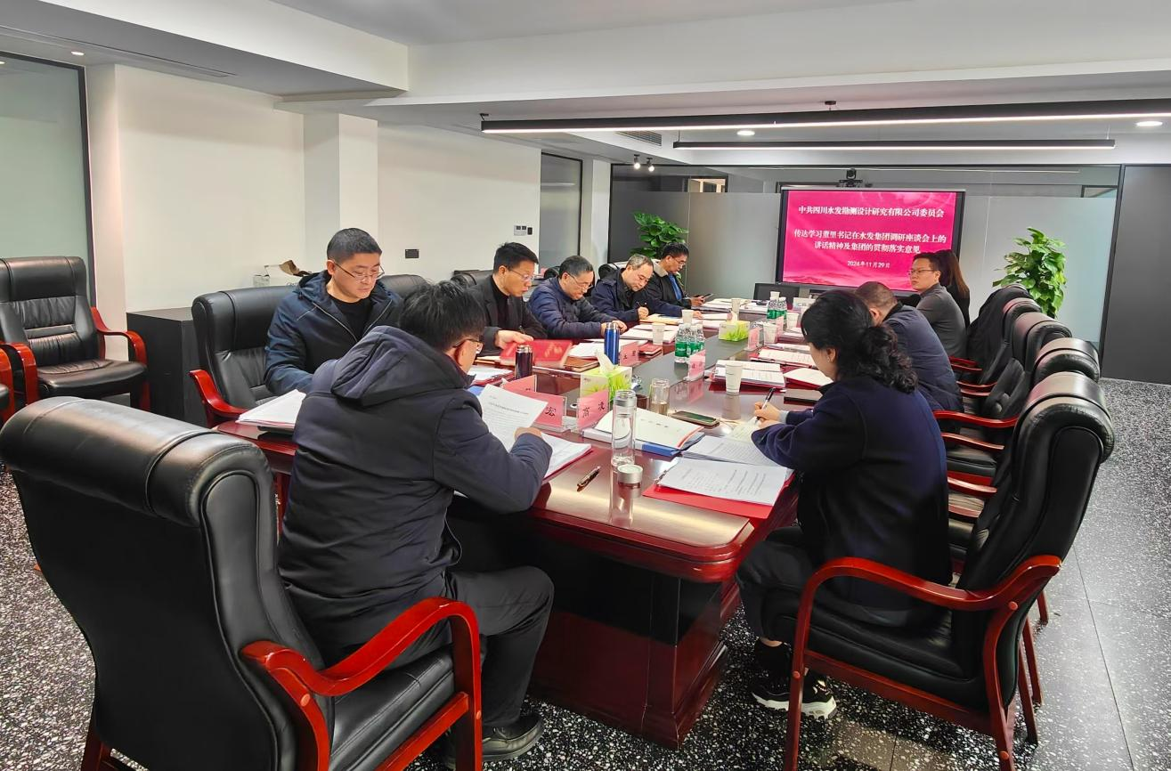會議指出,設計公司各部門要迅速組織學習領會,將學習貫徹習近平總書記治水重要論述和黨的二十屆三中全會、省委十二屆六次全會精神,與董里書記調研講話精神有機融合,確保入腦入心、見行見效。按照集團總體安排部署,設計公司將以建設四川現代水網作為使命任務,精準定位工作重點,為四川水利事業的高質量發展貢獻力量。