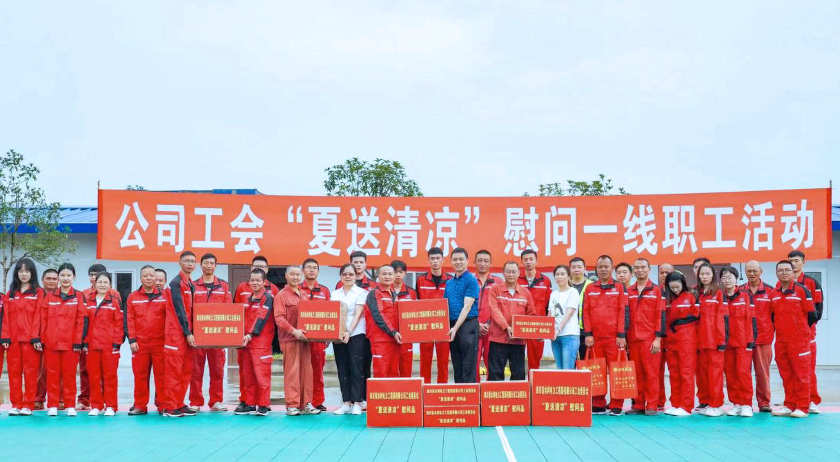 8月5日,公司黨委委員、職工董事、工會主席夏永紅,紀(jì)委委員、工會副主席付麟麗,工會辦公室主任秦利一行到青神虎渡溪航電樞紐工程項(xiàng)目開展“夏送清涼”慰問及工作調(diào)研,為一線職工送上防暑降溫物品,帶來組織的關(guān)懷。