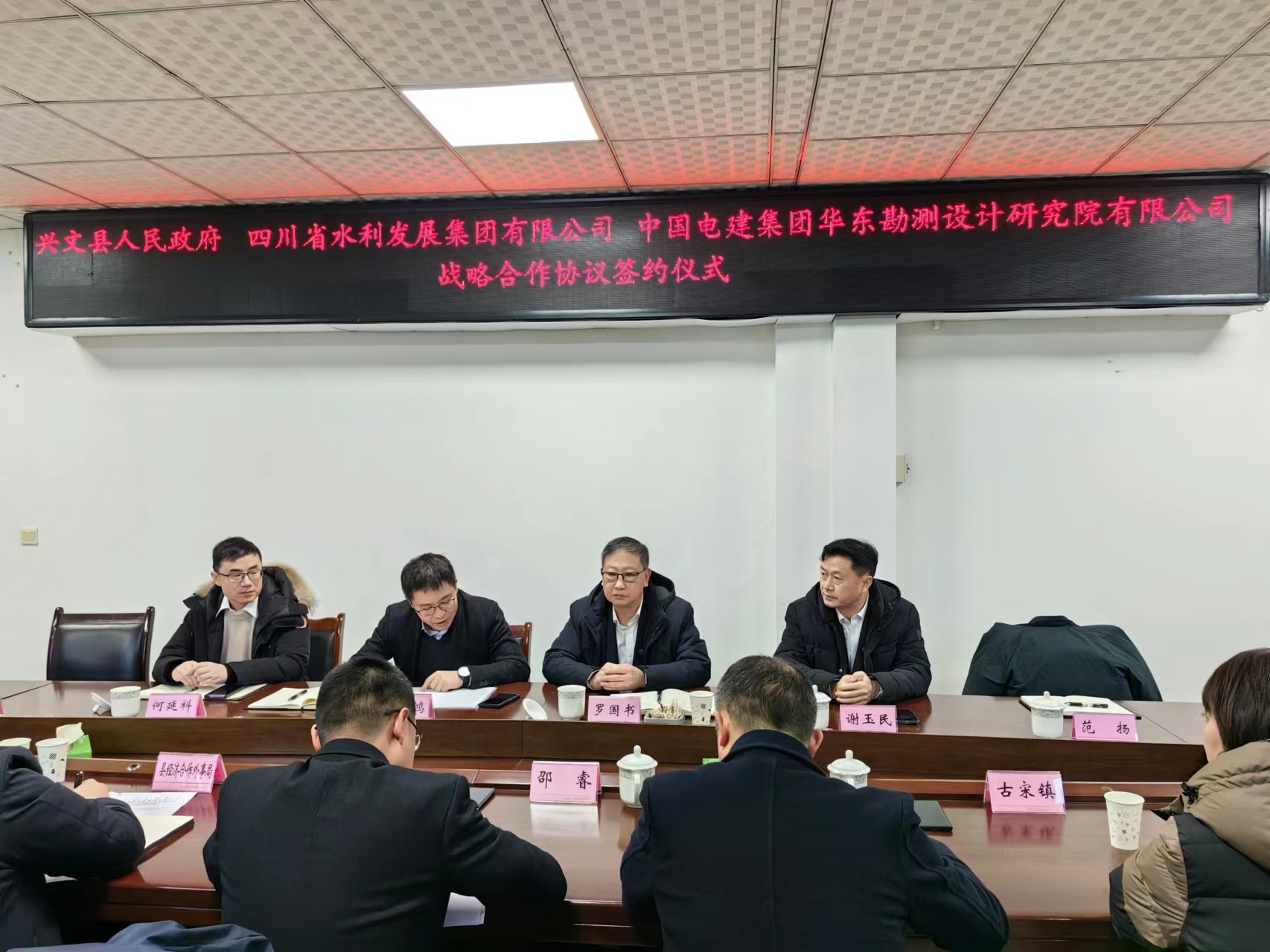 集團(tuán)項(xiàng)目前期工作部負(fù)責(zé)人謝玉民、經(jīng)營管理部相關(guān)工作人員,興文縣領(lǐng)導(dǎo)江北春、戴林沖,中電建華東院西南區(qū)域總部何延科、郭榮利參加了簽約儀式。
