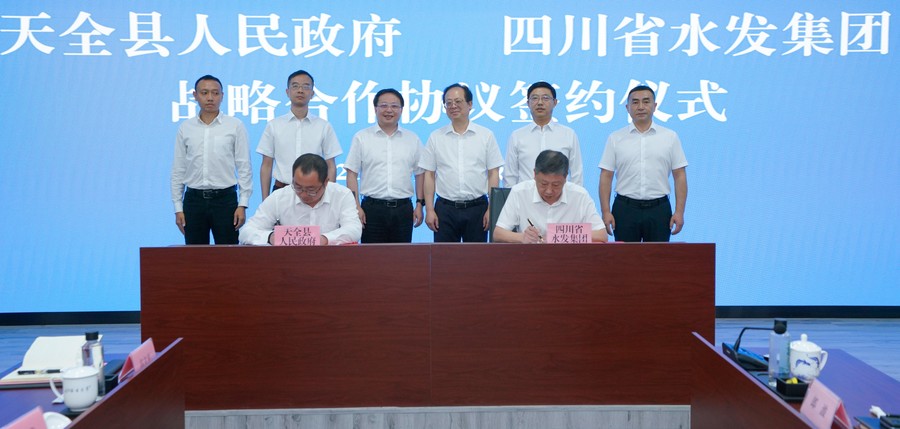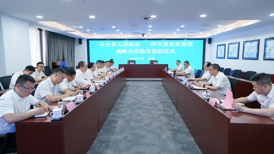 6月16日,省水發集團與天全縣人民政府舉行戰略合作協議簽約儀式。簽約儀式由集團董事羅國書主持。集團黨委書記、董事長鐘杰,天全縣縣委書記余力出席儀式并講話。