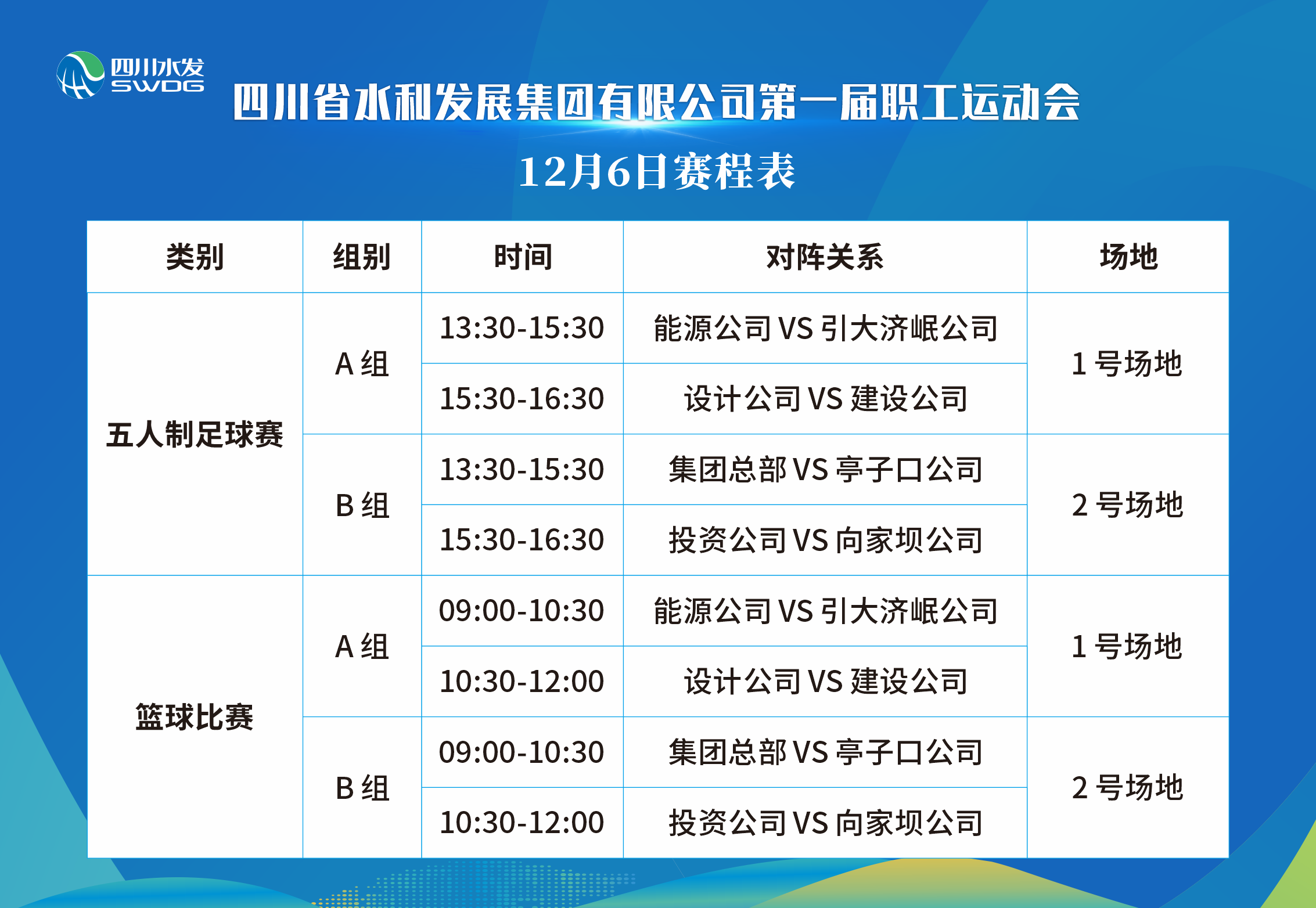 此次運動會分為2個階段。12月5日-12月8日為預賽階段,比賽項目包括:五人制足球賽、籃球賽、羽毛球混合團體賽、乒乓球混合團體賽,來自集團總部及7個下屬公司共220余名運動員以循環賽和排位賽的方式角逐4個類別,8個決賽名額。12月9日,將舉行此次運動會開閉幕式,球類比賽決賽以及趣味運動會。