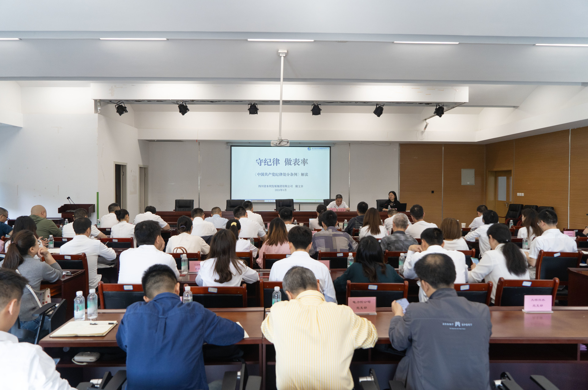 4月19日,集團黨委委員、總工程師隆文非到設計公司開展《中國共產(chǎn)黨紀律處分條例》(以下簡稱《條例》)專題黨課宣講活動,集團總部建設管理部、質(zhì)量安全環(huán)保部參加宣講會。設計公司黨委書記、董事長高希章主持宣講會,班子成員、各黨支部黨員代表共50余人參會。