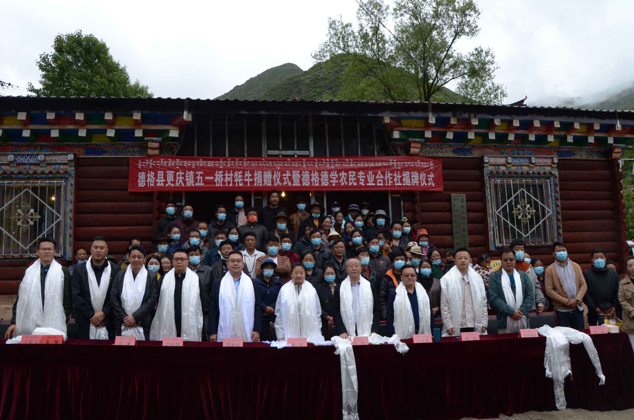 今年以來,集團與水利廳派駐五一橋村駐村干部,充分考慮民族地區(qū)的民族風俗和群眾的生活習慣,用真心和真情幫助群眾,共同致力指導五一橋村成立農(nóng)村集體經(jīng)濟合作社。通過與德格縣市場監(jiān)管局、縣稅務(wù)局等部門的密切協(xié)調(diào),于4月12日完成五一橋村集體經(jīng)濟合作社的注冊,取得德格縣德學農(nóng)民專業(yè)合作社營業(yè)執(zhí)照。通過廣泛動員,293位五一橋村村民加入合作社。在村民集資的基礎(chǔ)上,以五一橋村集體配套一部分、更慶鎮(zhèn)政府支持一部分、集團支持一部分的方式,作為五一橋村集體牧場的啟動資本,實現(xiàn)集體經(jīng)濟“零”的突破。在當天的捐贈現(xiàn)場,副總經(jīng)理鄭祖杰代表集團向德格縣德學農(nóng)民專業(yè)合作社捐贈價值55萬元的牦牛70頭。
