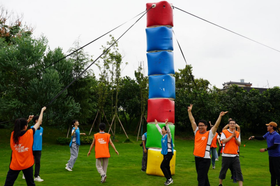 為更安全地開展趣味運動,在團建教練的帶領下,齊跳熱身操,職工們個個熱情洋溢,充滿活力。在熱身操結束后,通過趣味分組游戲,教練將所有參與員工分為了幾個團隊。
