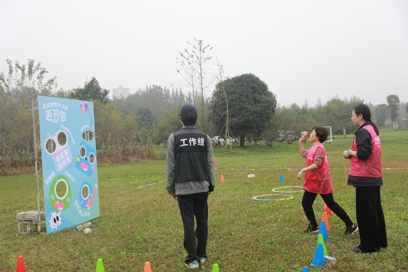 本次活動巧妙地融合了豐富的健康知識問答和形式多樣的趣味運動。活動首先通過游戲互動將參與人員分成多個小組,然后按活動規則對各小組參加的活動進行積分排名。在“慧選健康”環節,參與者對健康知識作選擇并在規定時間奔跑至劃定的A或B區域,選擇錯誤被暫時淘汰;在趣味運動環節,上一活動環節被淘汰者通過飛盤九宮格、正中靶心、踢毽擊鑼、呼啦圈、扔沙包等趣味運動“復活”后,再次參與“慧選健康”活動。