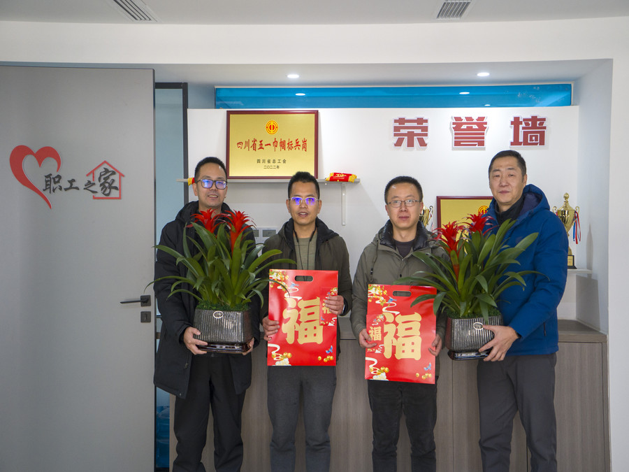 ? ? ? 1月18日,成都市青羊區草堂街道總工會副主席葉兵慰問公司“青羊工匠”唐全民、陳昌盛。