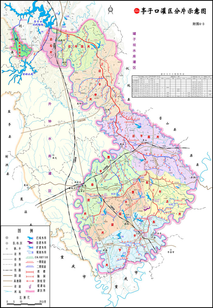 亭子口灌區分片示意圖