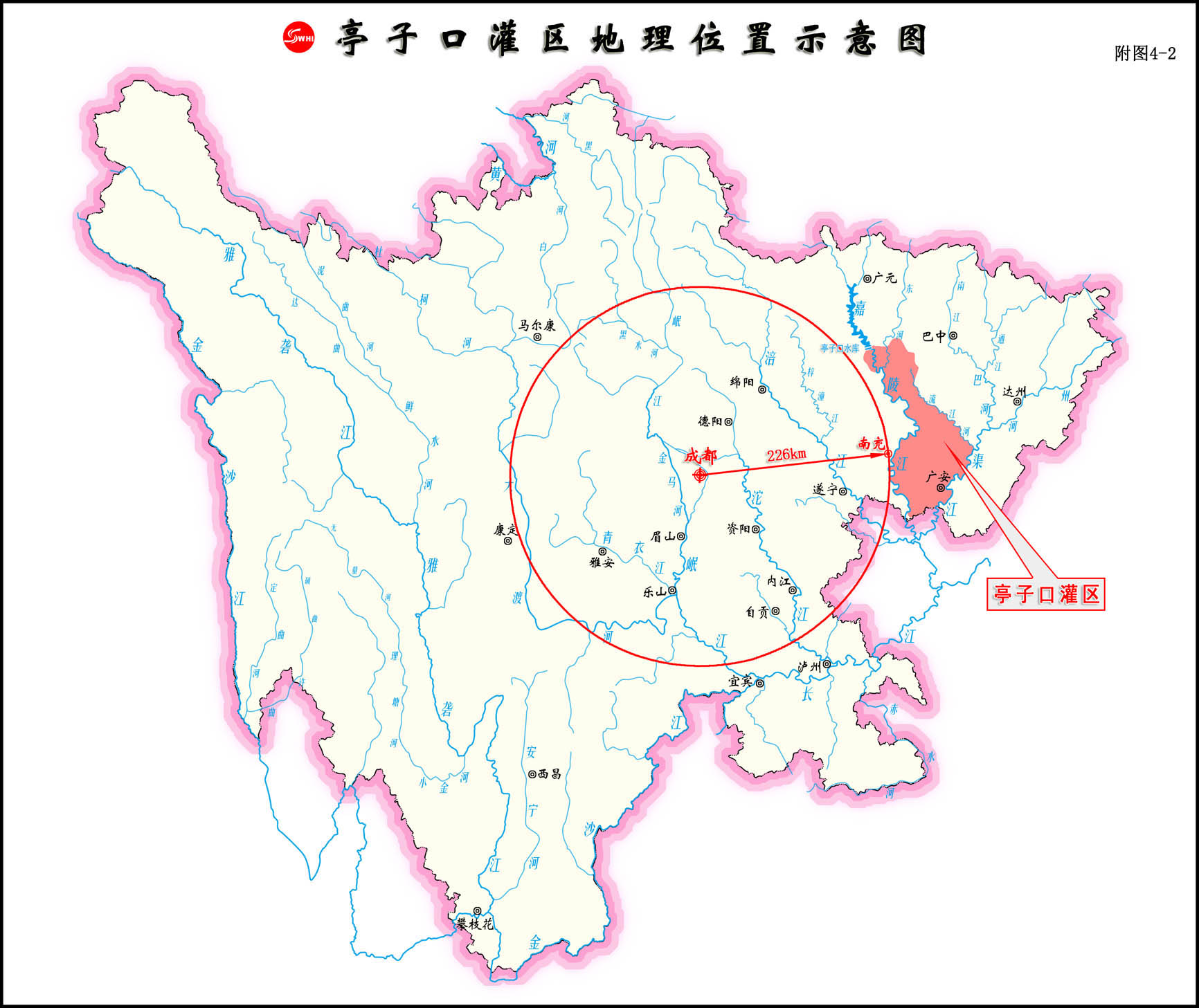 亭子口灌區地理位置示意圖