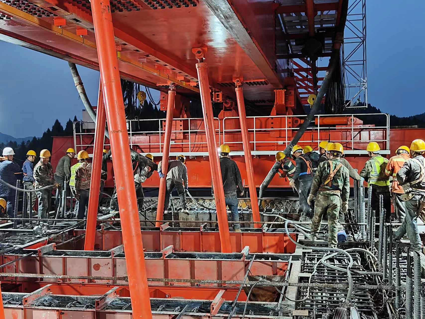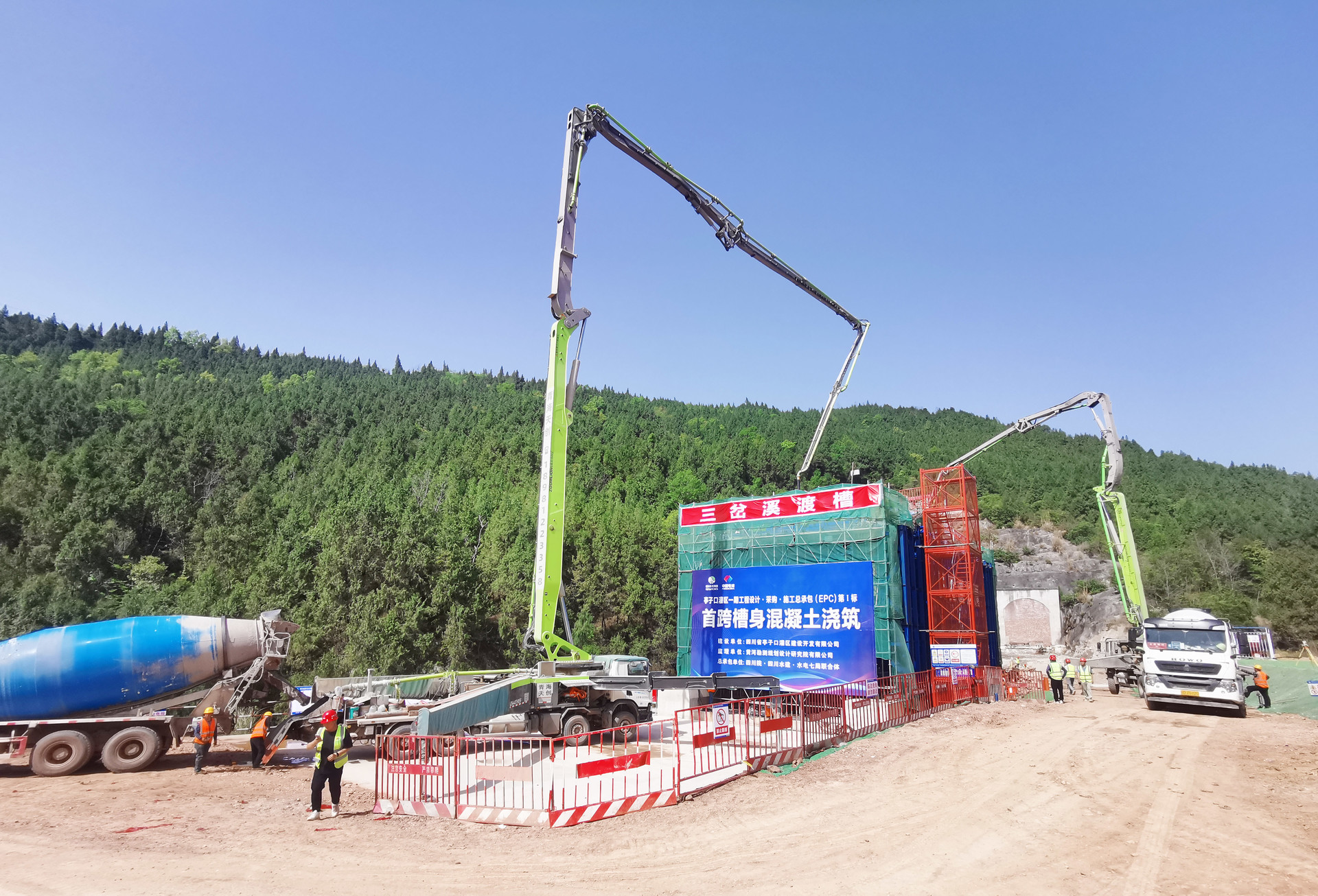 老吳壩渡槽正在進行混凝土澆筑