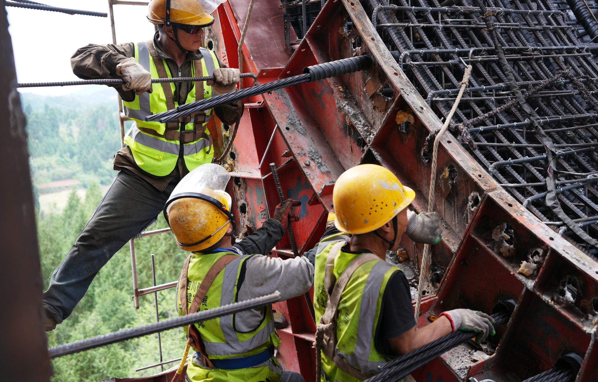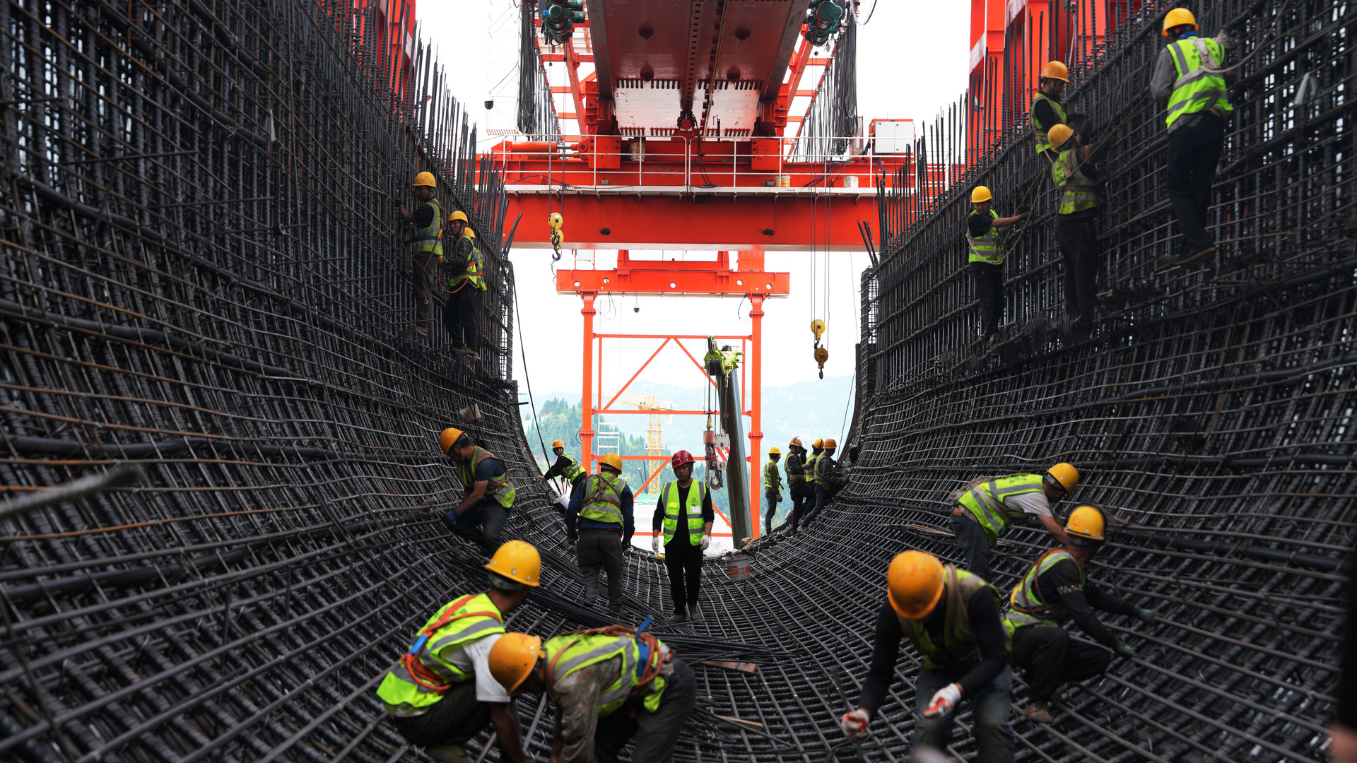 粟家廟渡槽,工人正在焊接槽身漸變段鋼筋