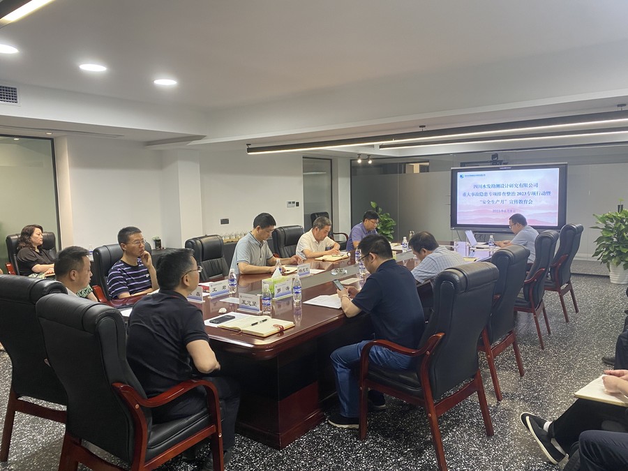 會議解讀了《四川水發勘測設計研究有限公司重大事故隱患專項排查整治2023 實施方案》;學習了《水利工程生產安全重大事故隱患清單指南(2021年版)》《湖南長沙“4·29”特別重大居民自建房倒塌事故調查報告》及水利安全重點檢查事項;觀看了《生命重于泰山》和《生命之鑒——全省生產安全事故》等電視專題片,黨委副書記、董事、總經理張宏代表公司在會上作出安全生產承諾。